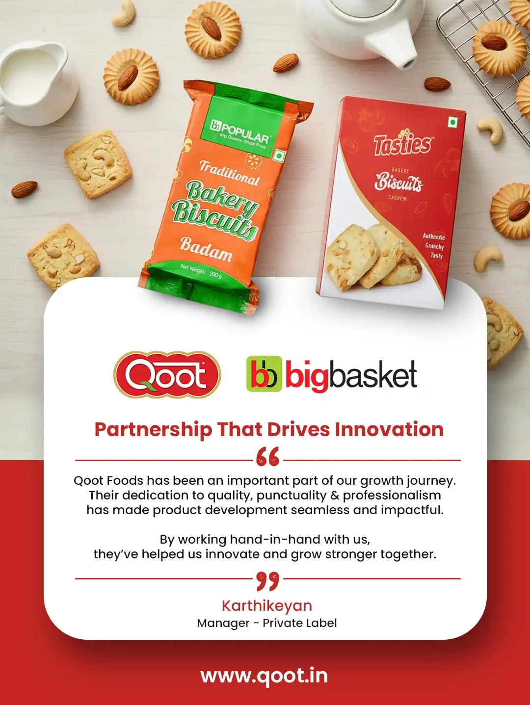 Contract manufacturing allows your startup to outsource the production of bakery cookies and healthy snacks to Qoot, letting you focus on branding, marketing, and sales while we handle manufacturing. Benefits include: